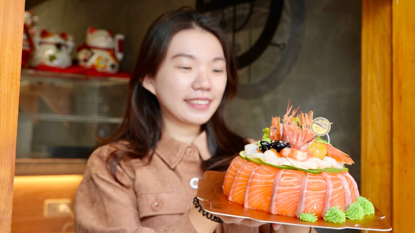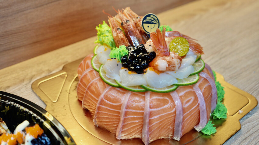 最厲害生日蛋糕「干貝鮭魚刺身蛋糕」