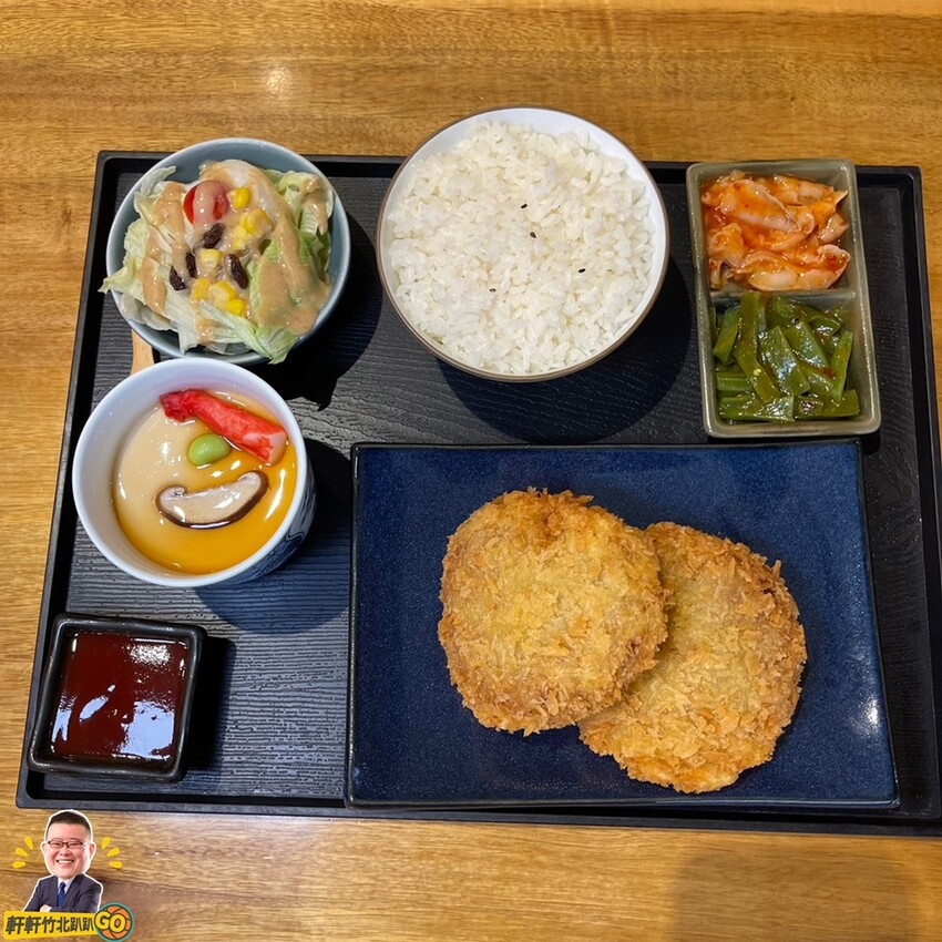 炸漢堡排定食 200元 (附沙拉、小菜、茶碗蒸)。