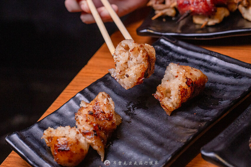 這一盤都是用招牌的焦糖醬為主,吃起來焦香中會帶有一點微微的甜味,整塊的甜不辣處理的相當不錯,吃起來很軟Q,然後焦糖醬整個很搭,甜鹹甜鹹的。香菇跟茄子吃起來還是有水份,味道也不會太死。烤串裡頭豆干算是最難烤的,主要是很怕外面都是醬的味道,裡面完全就是沒吃進去,但《柒串燒屋》處理還不錯,味道不會沒有。