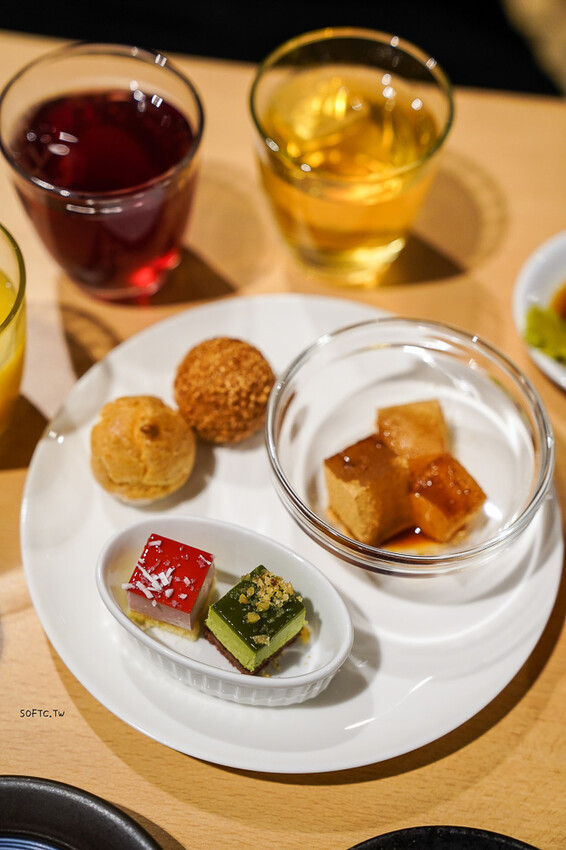 甜點有果凍、泡芙、蛋糕、芝麻球等等,還有蕨餅,裝成一個個小小的方便拿取,一次也不會吃太多太飽,小份量很貼心。