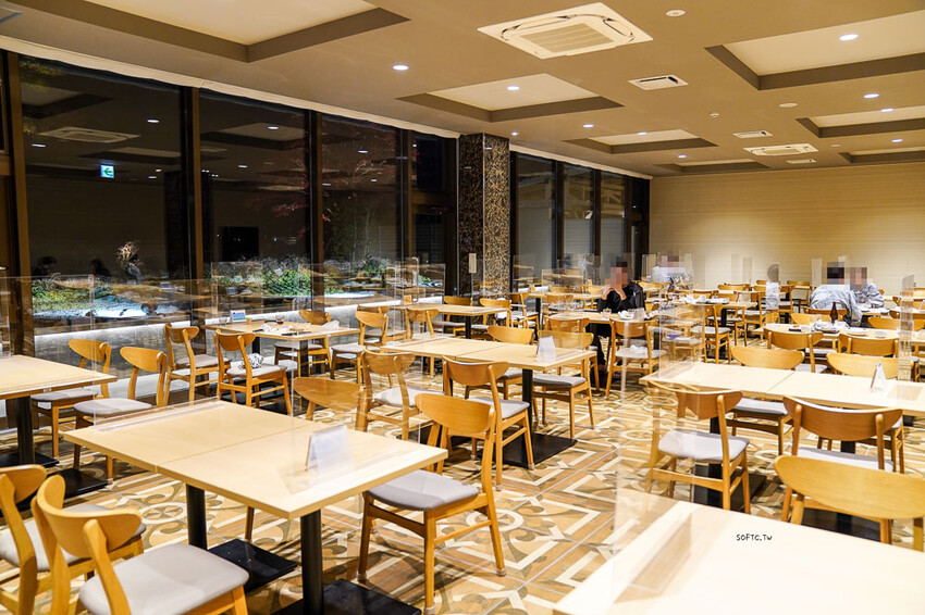 富士河口湖度假村飯店餐廳可以邊吃飯邊眺望富士山,富士山飯店軟絲們一定不要錯過這美景啦!(富士河口湖度假村飯店訂房優惠:Agoda | Booking.com)