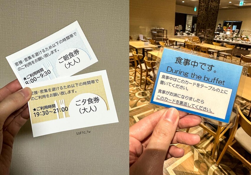 用餐前服務人員會給一個使用中跟使用完畢的雙面牌子,方便服務人員辨識是否需要收拾整理,接下來就來看看富士河口湖度假村飯店自助餐吃到飽的菜色吧,吃飽後還可以去大浴場泡湯,河口湖溫泉飯店推薦給軟絲們。