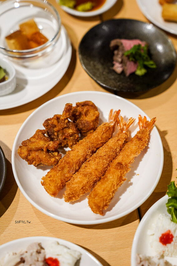 炸蝦相當酥脆,蝦子鮮甜完全沒有油耗味,炸雞多汁外皮金黃酥脆,雖然軟西覺得稍稍有點油膩,但柯柯超愛大概夾了三輪了吧哈哈。
