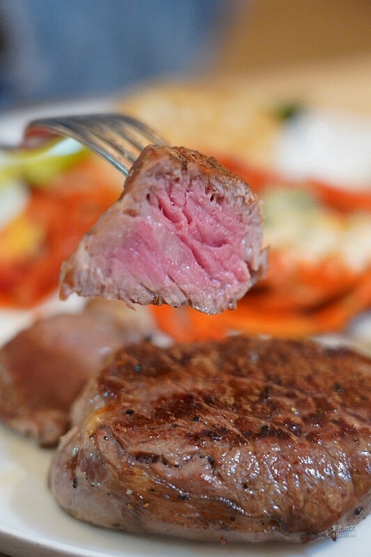 牛排是5分熟,粉嫩的紅色好誘人,因為品質很好,也很juicy 愈嚼愈香。非常棒的牛排啊