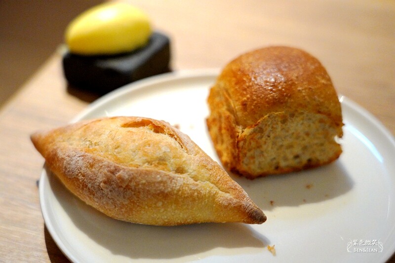 餐前麵包,有兩種,剛出爐的香酥溫熱的,吃完的可再續。 搭上一旁的奶油非常好吃,滑順綿密不膩口,好好吃啊