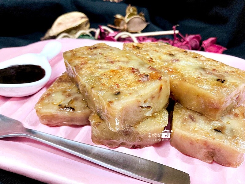 一包糯米粉做出一大盤鹹甜粿,粿蒸熟後切片吃或下鍋煎到兩面微焦赤的口感也很讚,放進高湯煮軟後加一點辛香料滴幾滴香油也是極方便的吃法