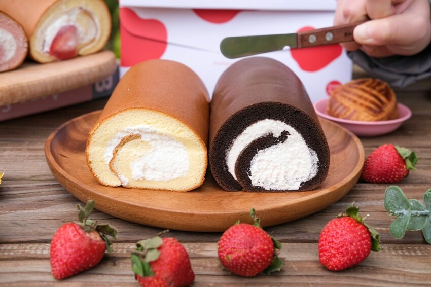 ▼冬季必吃的鮮採草莓生乳捲,嚴選甜度與風味絕佳的大湖草莓,搭配細膩柔順的北海道奶霜與卡士達,帶來酸中帶甜的迷人滋味,吃起來輕盈又爽口,就算是長輩也會喜歡的味道。