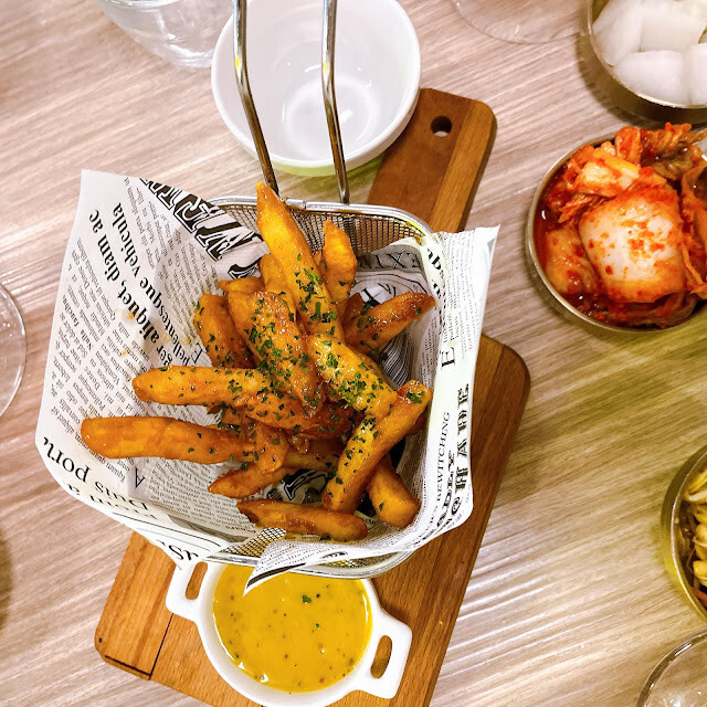 金黃酥脆的厚切薯條上,淋上甜滋滋的蜂蜜和灑上香料,酥脆爽口,還可以沾一下蜂蜜芥末醬,聊天之餘,配上一根根酥脆薯條,是最佳聊天小點心,讓你一根接一根。