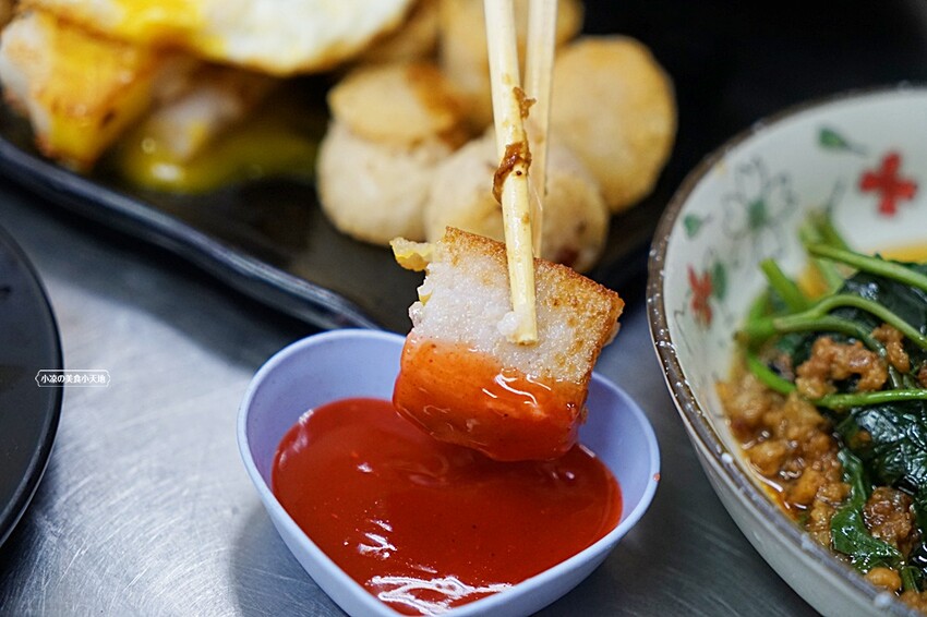 最愛這種純米手作的菜頭粿,吃起來很綿密,散發著淡淡的米香與蘿蔔甜味,沾上特製辣醬是我最愛的吃法~