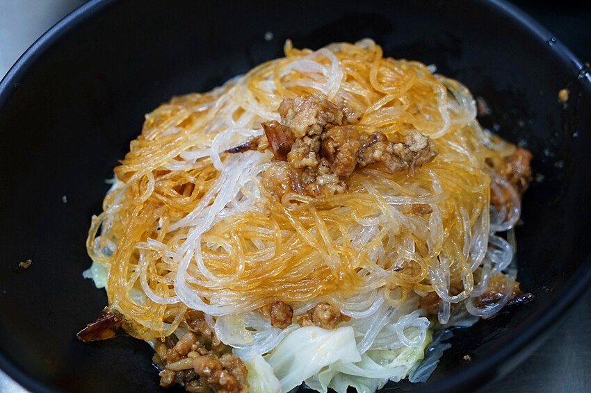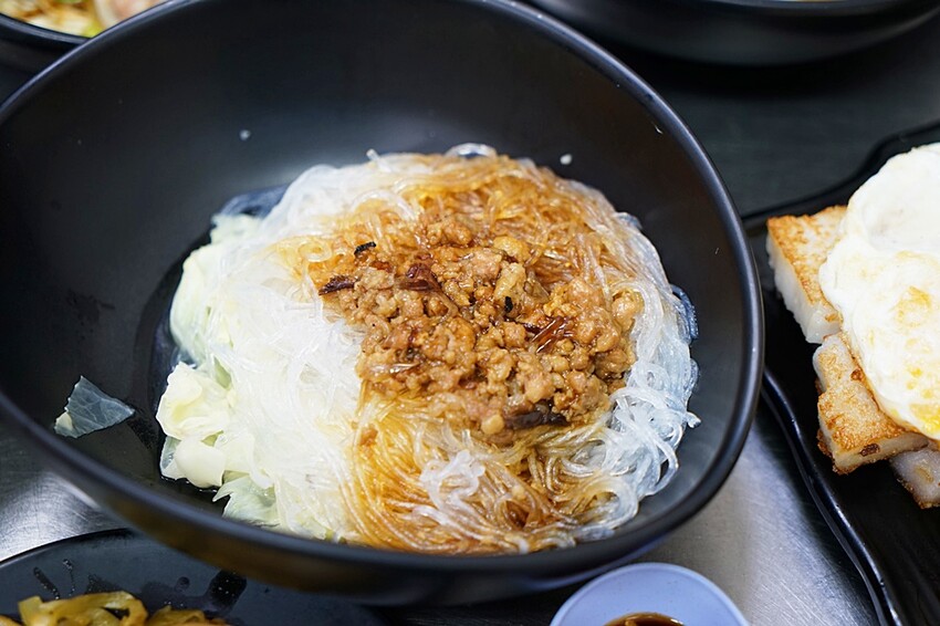 冬粉淋上獨家肥瘦均勻的肉燥,估溜入嘴鹹香不油膩超對味,今日搭配的高麗菜也特鮮脆~
