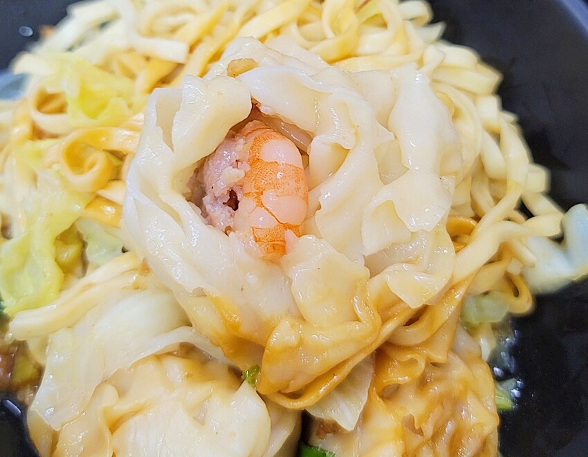 鮮蝦大餛飩內給的是一隻鮮蝦,蝦蝦彈牙搭上肉餡超飽滿的唷~~
