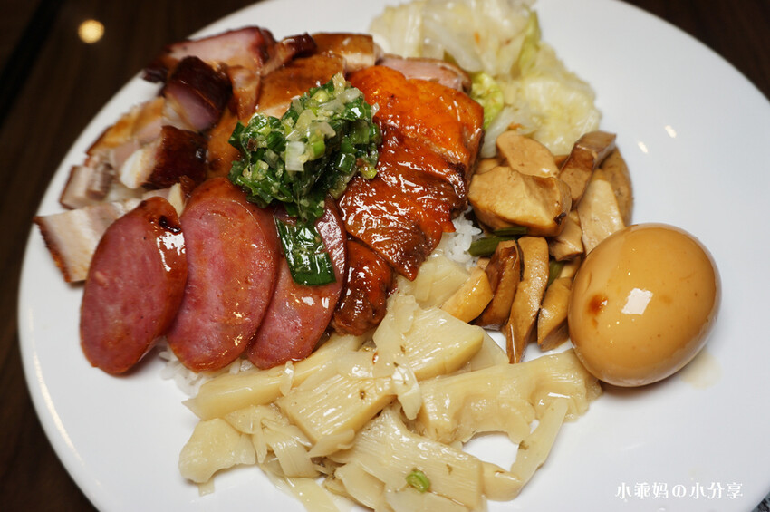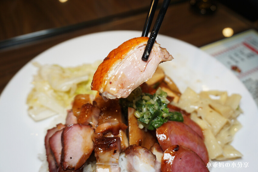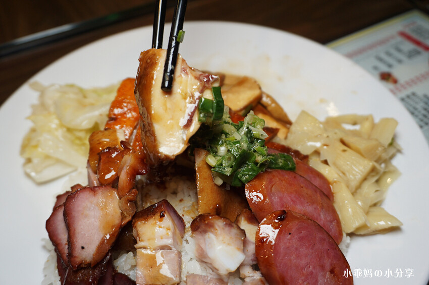 除了好吃的配菜外還有超級澎湃的豪華五寶飯,有雞腿肉、燒鴨、叉燒、化皮燒肉、香腸~~~