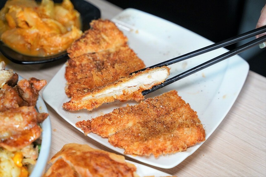這是後來加點的無骨雞排,厚薄度適中,口感不會太乾柴,撒上椒鹽粉更對味!