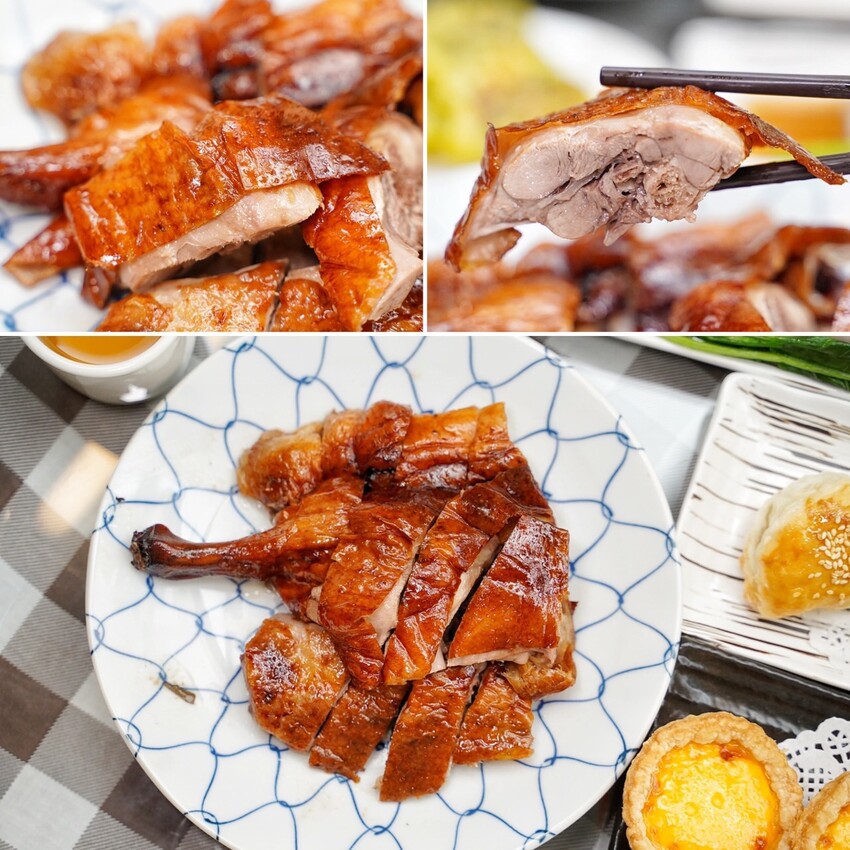 最後這道「琥珀燒鴨」是今年11月才新上市的,而且是假日限定販售!更特別的是還有單價更高的燒鵝可以選擇,分全隻、半隻、1/4隻販售,當天點了1/4隻帶腿的下庄部位,上庄則是便宜100元,使用宜蘭櫻桃鴨製作,琥珀色澤的表皮,烤至外脆內嫩,肉質也挺鮮嫩,而且相當入味。
