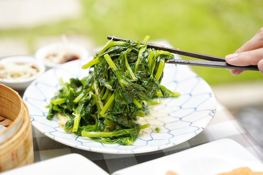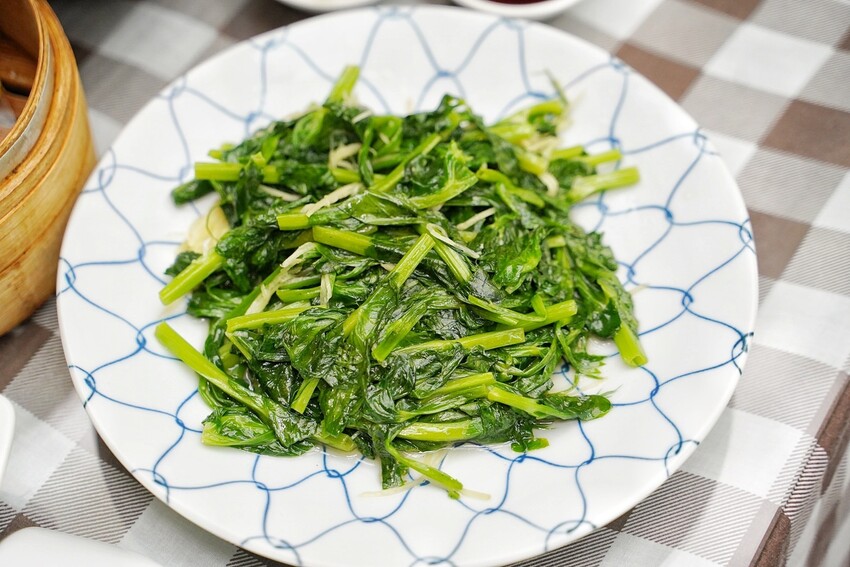 翠綠的「清炒大豆苗」是外面少見的炒青菜,是豌豆的嫩莖與嫩葉,加入薑絲大火快炒,口感吃起來脆脆的,還有獨特的豆苗香氣,個人蠻喜歡的。