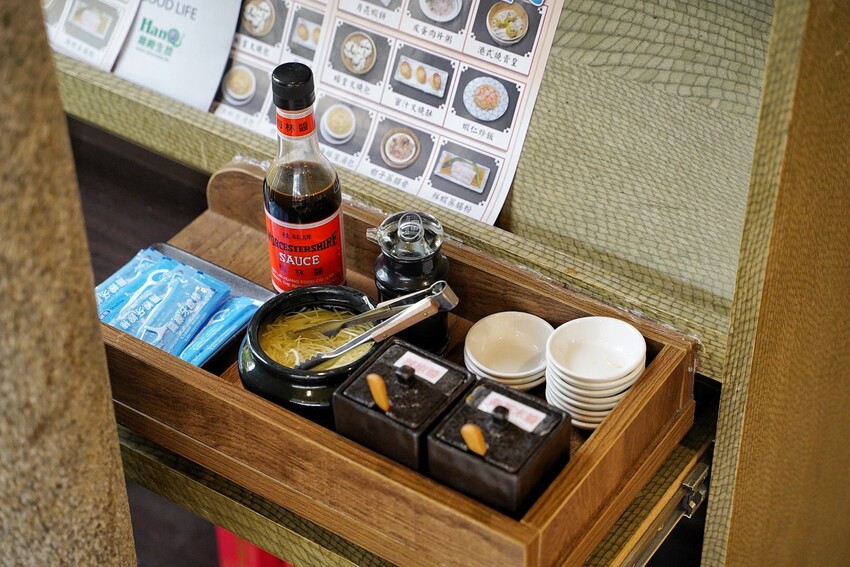 醬料區有梅林醬、薑絲、辣椒、黃芥末醬、醬油可以自行取用。