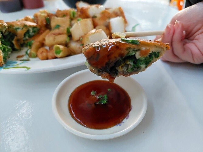 蘿蔔糕推薦必點,外層有薄薄的脆皮,沾上醬油膏就很好吃