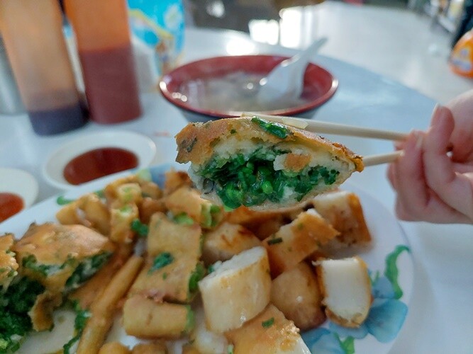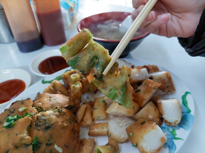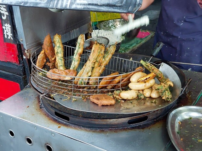 人氣招牌必吃的蚵嗲,外皮酥酥脆脆,裡頭餡料超級多,一口咬下滿滿的韭菜香