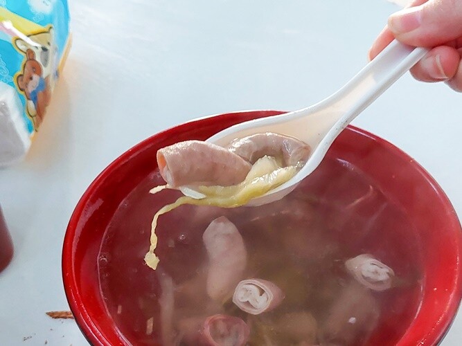 腸子軟Q口感還不錯,搭配酸菜湯頭味道變的很清甜