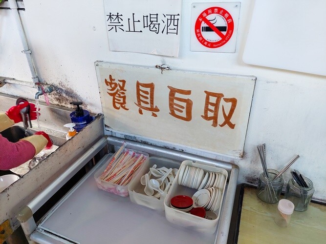 旁邊有餐具跟醬料碟可以自取