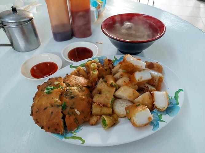 攤子前面就有菜單自己拿來畫,看要內用或是外帶都可以,單子寫好直接給老闆就好,餐點做好再付錢即可。品項都是一些傳統古早味炸物還有湯,價格相當的平易近人,點了好幾樣也才100出頭。
