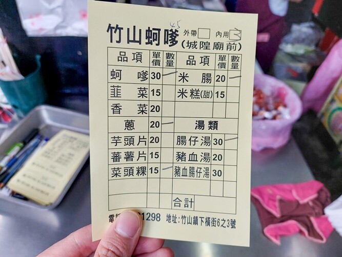 竹山蚵嗲菜單價位