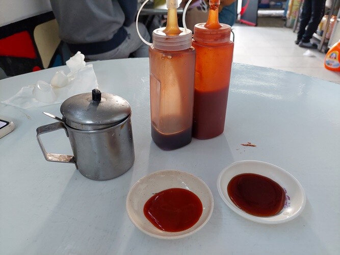 桌上有放醬油膏、甜辣醬、蒜泥等等,喜歡沾什麼自己加