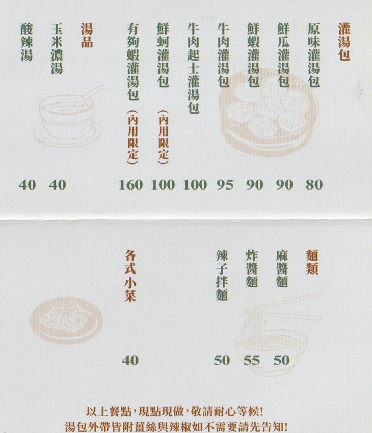 古猗園灌湯包-中壢總店餐點有提供內用以及外帶,但有兩款灌湯包是不能外帶,而這天我們是選擇內用。