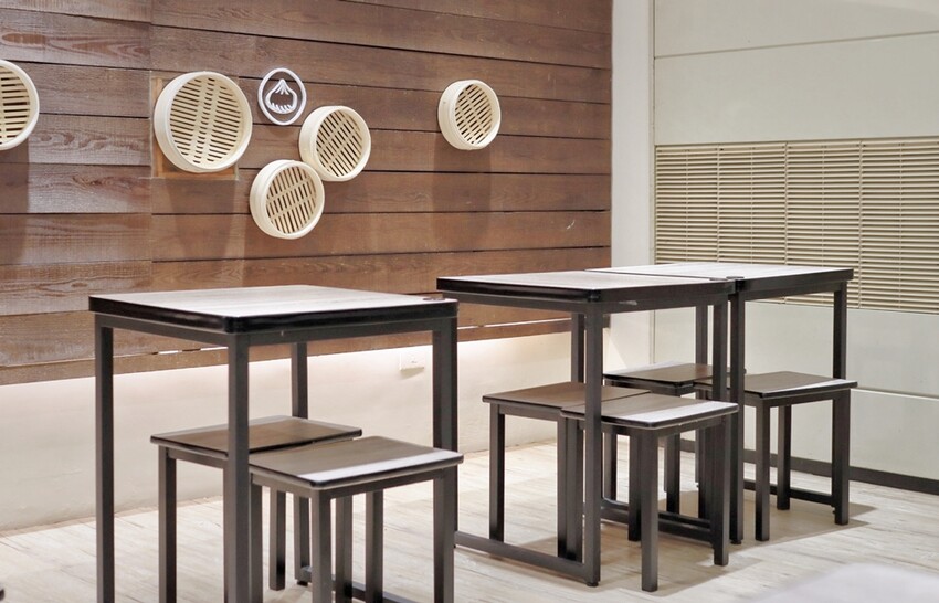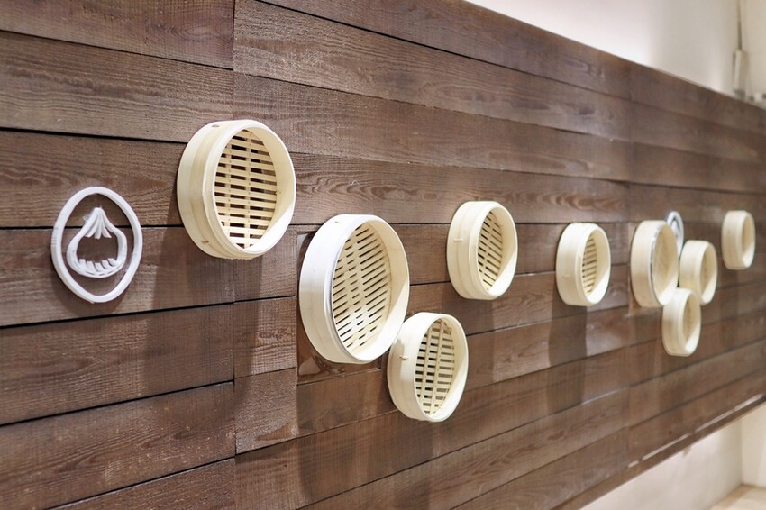而中壢古猗園灌湯包內用位置主要是2~4人座為主,人多需要併桌還是可以跟店家告知,請他們處理喔!蔬果姐妹也超喜歡牆上掛著蒸籠、可愛湯包等的設計。