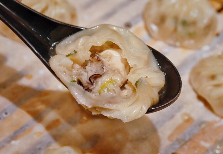 外表看起來以為是一般正常的鮮肉湯包,裏頭可是放了顆鮮蚵且鮮蚵的熟度拿捏得剛剛好,不會有腥味反倒有鮮味,愛吃鮮蚵的朋友千萬不要錯過喔!