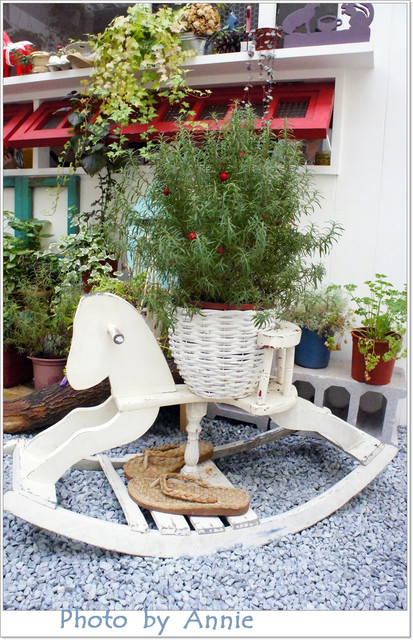 可愛的小木馬搖搖椅也在庭園裡曬著暖暖的太陽