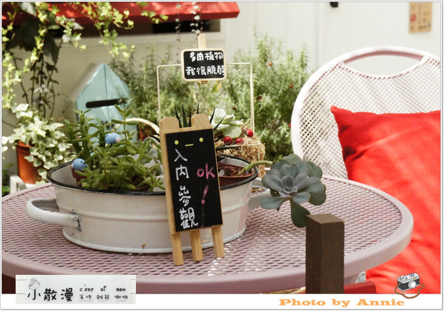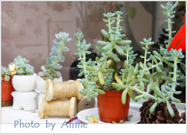 桌上擺了一些可愛的多肉植物 像在跟路過的旅人打招呼