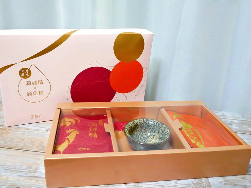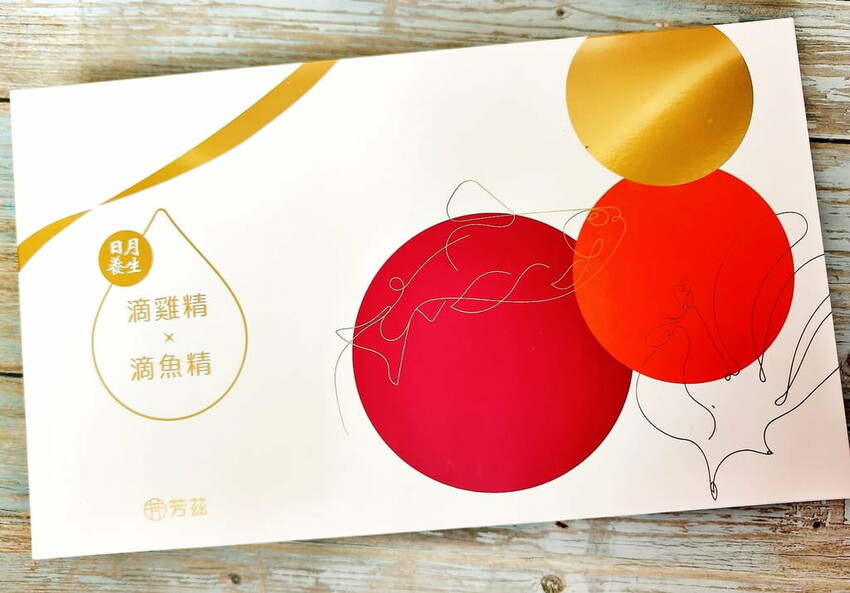 日月養生雞魚饗宴新年禮盒為10入裝的精緻禮盒,滴魚精和滴雞精各五包. 分別整齊擺著並區隔開. 收到時內容物相當完整