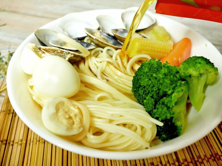 這天晚上天氣好冷. 玉媽咪準備了蔬菜湯麵讓寶貝們吃. 煮完上桌後. 分別各倒入一包日月養生滴魚精. 讓孩子不僅可以吃到蔬菜又能補充到更多營養