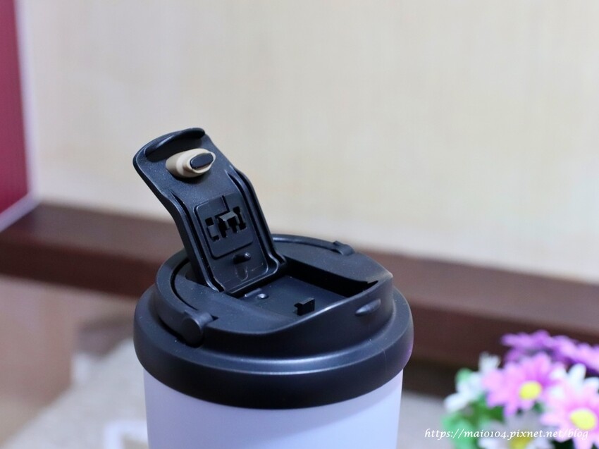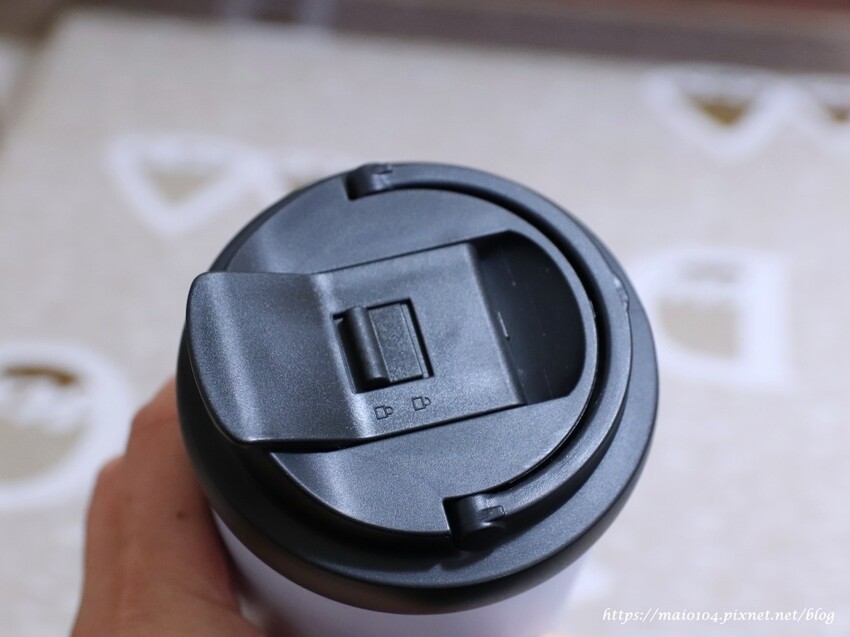 防燙杯蓋直飲口有個卡榫,稍微推一下就能把蓋子給打開