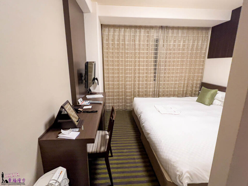 拿到房卡後就趕緊上樓休息,日式商務飯店的空間都不會太大,大型的行李箱打開剛好佔滿整個走道。