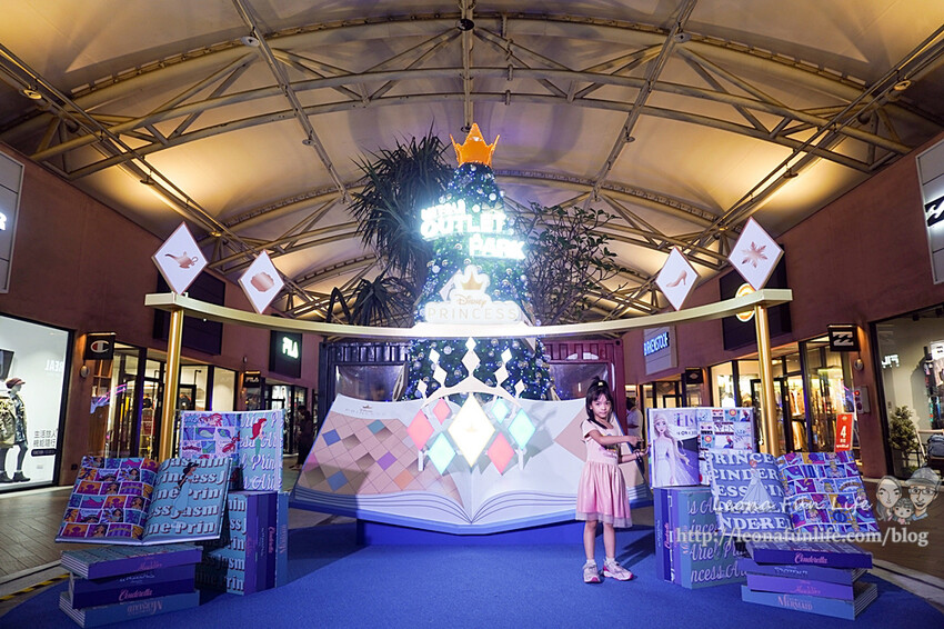 台中免費景點-台中港三井MITSUI OUTLET PARK,推出迪士尼公主奇幻繪本世界,最受歡迎的冰雪奇緣、小美人魚、阿拉丁、灰姑娘都化身為美美繪本燈飾,搭配應景聖誕樹整個超好拍,白天搭摩天輪、玩雪樂地、逛街吃美食,晚上在和迪士尼公主燈飾合照,充實的玩上一整天喔!!