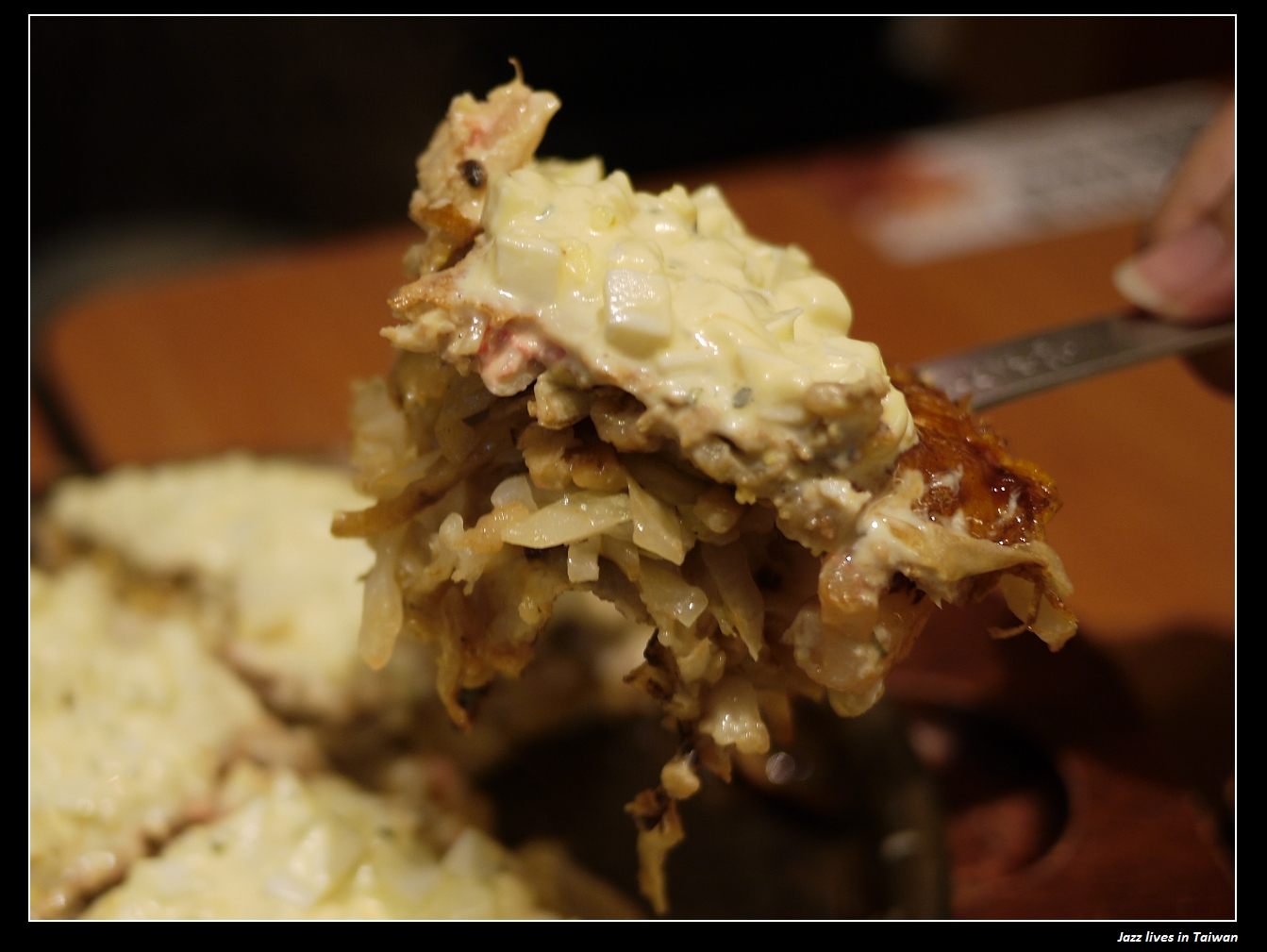 塔塔海陸MIX摩登燒($280), 上頭鋪著的是玉子加美乃滋調配而成的塔塔醬,
