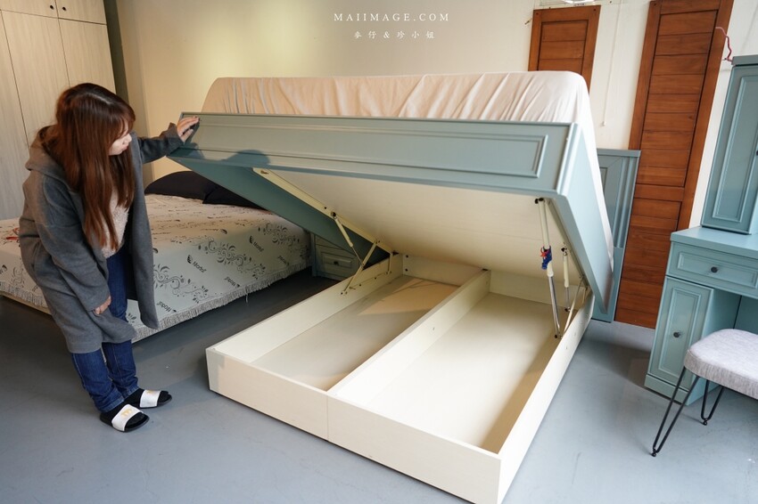 這一組床架相當適合喜歡歐風傢俱的朋友,這床架下方竟然還有收納空間,而且有上掀式完全不費力。