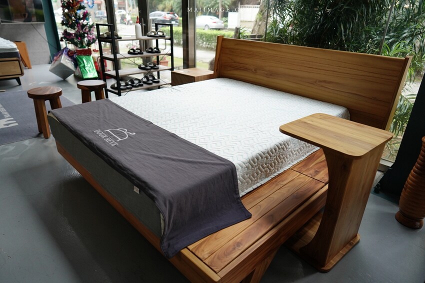 門市內展示的床墊是自家製造的「多莉芙」床墊品牌,來北極熊傢俱除了可以試躺各種軟硬度的床墊之外,還可以看得到床墊的製作過程。