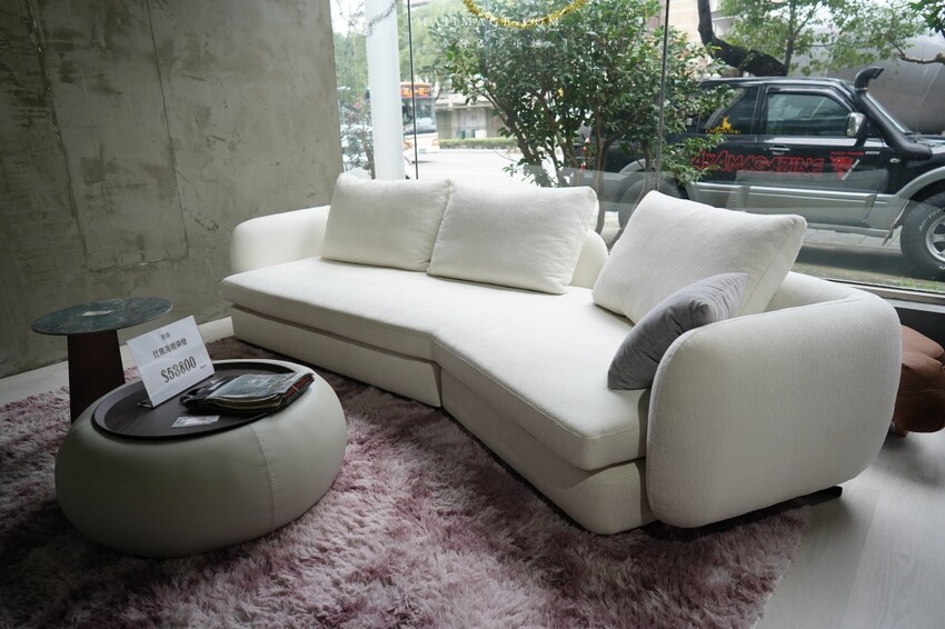 『現代精品館』裡有很多設計感不錯的沙發,不管是國外進口還是北極熊自有品牌,這裡通通可以挑選。另外在沙發布料跟尺寸大小通通可以客製化安排。