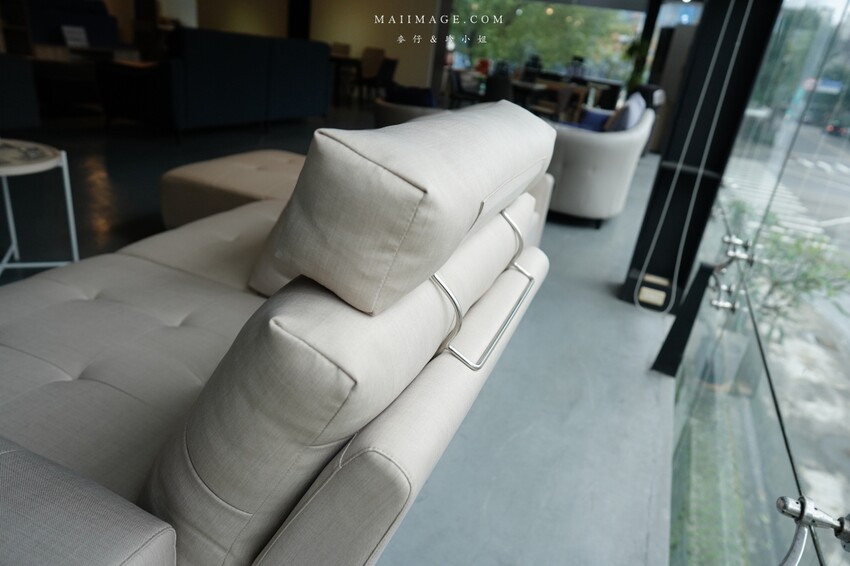 貴妃式L型」真的大氣又很有功能性,它的功能椅背可以前後移動,往前好坐、往後好躺