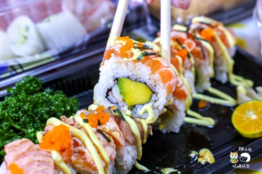 【秉宸香生魚片】用的是基隆漁港當日新鮮漁獲,冬天的漁獲肉質肥美卻不油膩,爽口鮮甜,加上非常獨特的醬油,不佐芥末醬或薑末都能彰顯其鮮甜,這間不論生魚片、握壽司或散壽司都很推薦喔!如果是第一次來買可以買一盒生魚片+握壽司試試看,但是毛毛蟲也很推薦啦XD