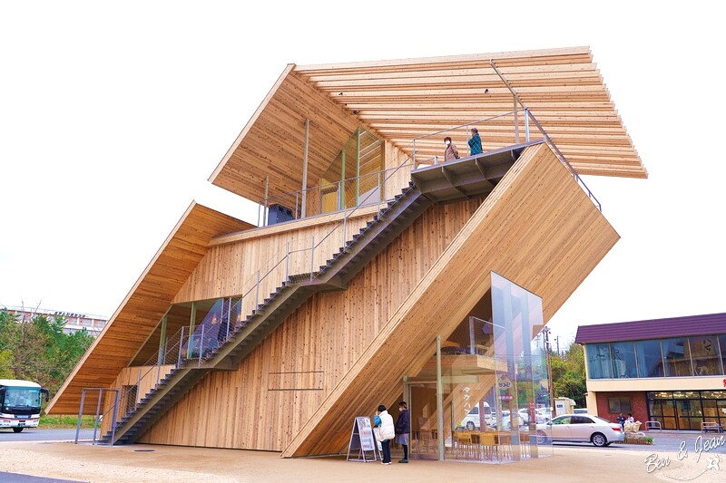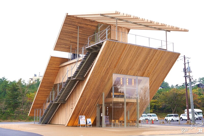鳥取沙丘對面還有個特別的「Takahama Cafe 高濱咖啡廳」,這是由隈研吾操刀的大作!