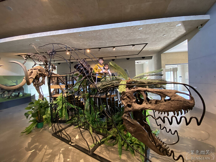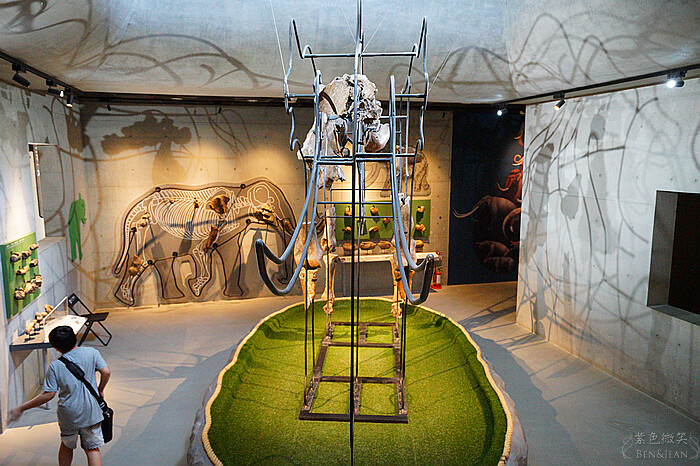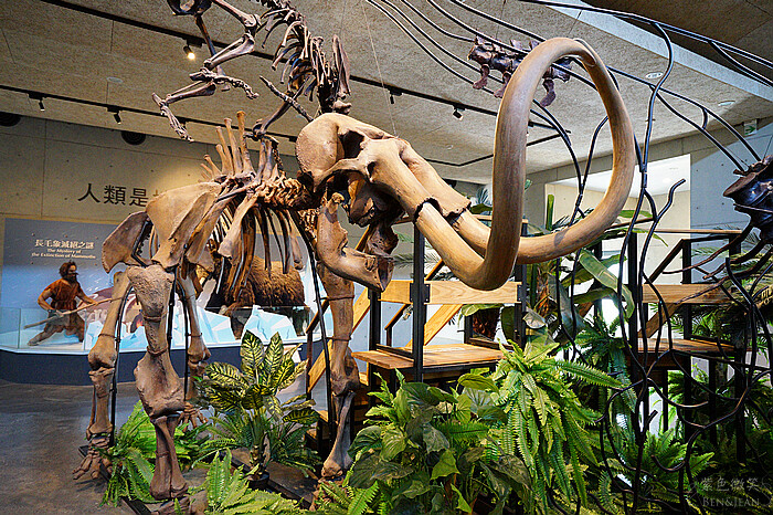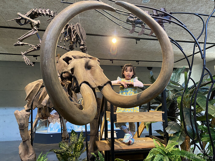 恐龍化石與長毛象的化石骨架,也可以上去一起合照呢