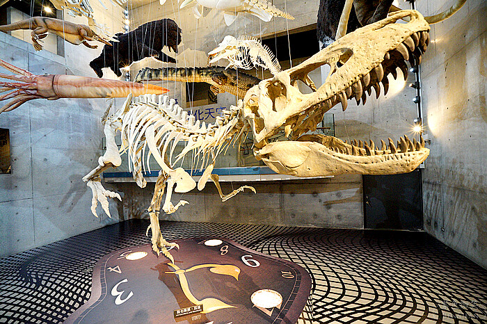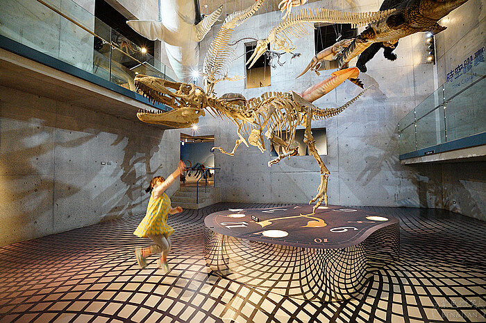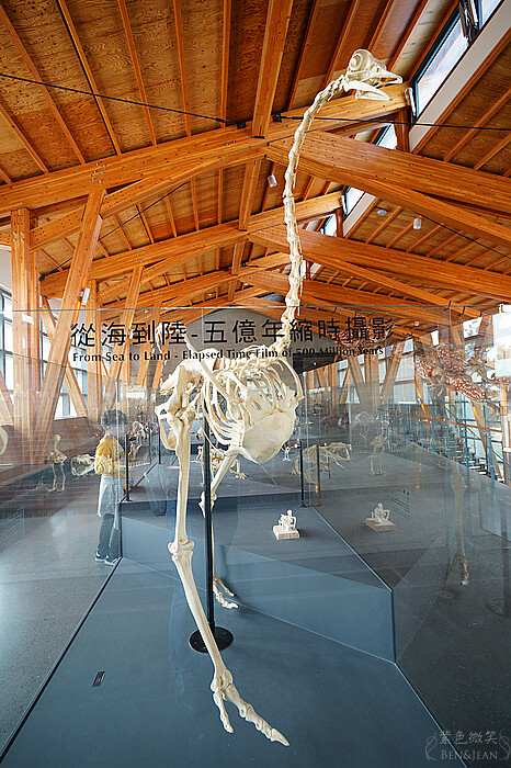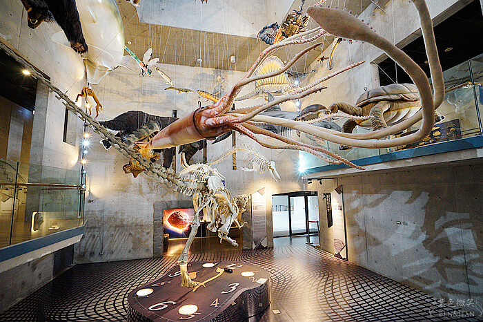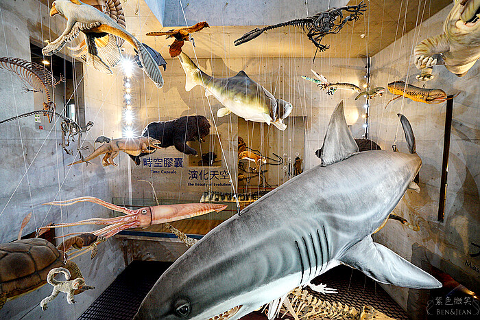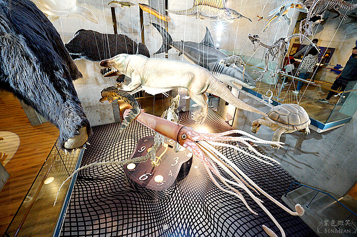這裏的館內中庭挑高大廳中演了一場古生物演化大戲,在時間的河流中,遊客可觀察天空中各種生物的演化,令人驚艷不已啊