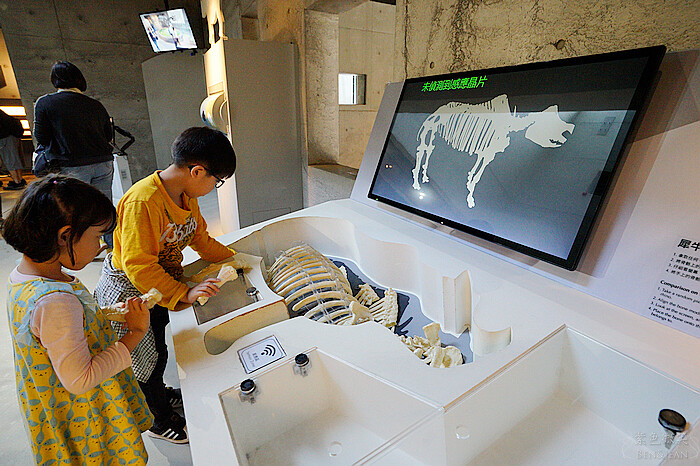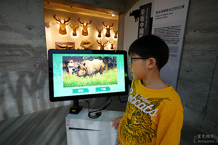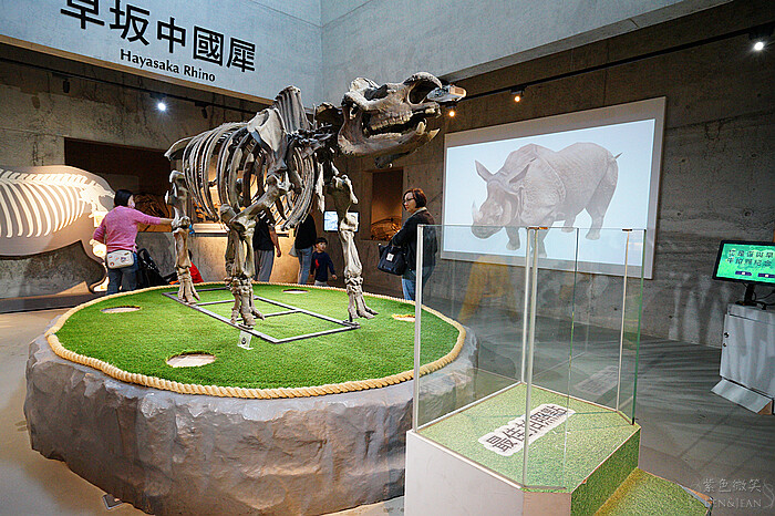 這也是鎮館之寶啊,以菜寮溪流域所發掘的”早坂中國犀”為主展,這是台灣所發現最完整的犀牛化石標本,園區的logo 也是以它來作為標誌。