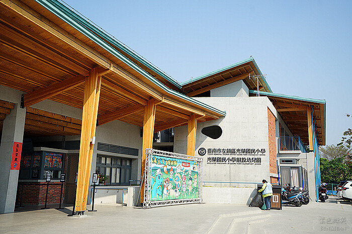 化石園區以清水模外觀設計為主體架構,特別的是這裏和光榮國小合而為一,成為全國唯一的「館校合一」化石博物館。