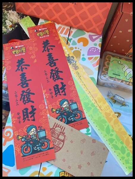 還貼心將包裝剩餘邊角料做成春聯與長尺
