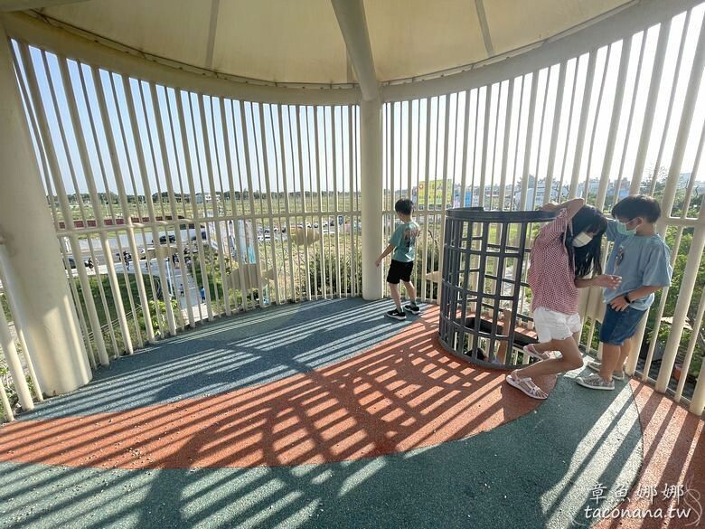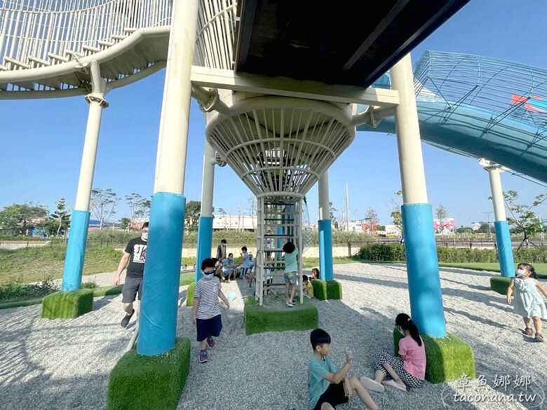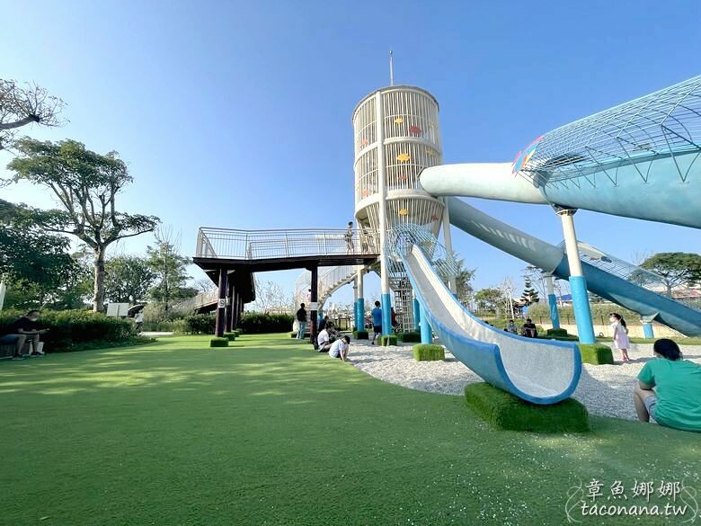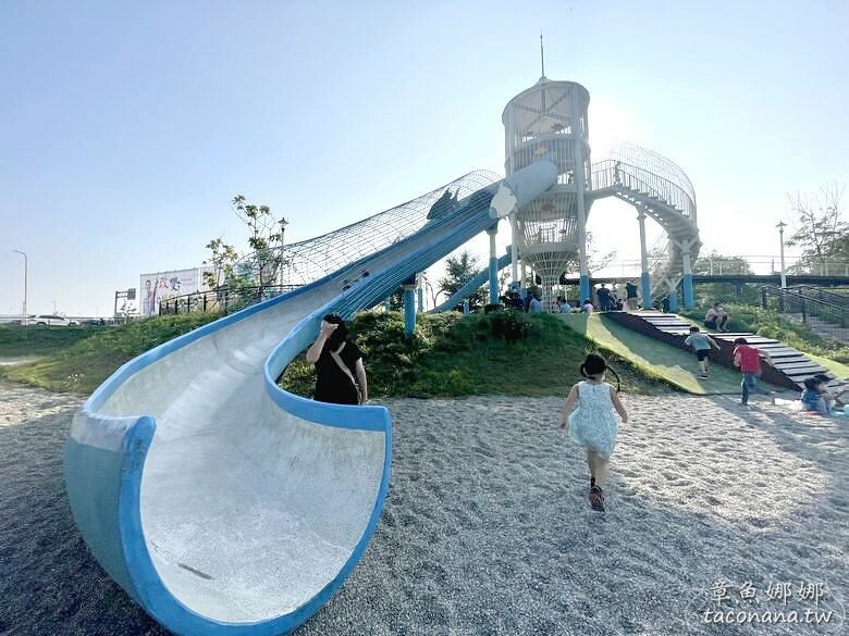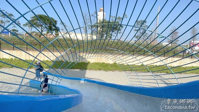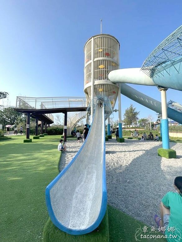 桃園親子公園好好玩!位於桃園觀音的草漯重劃區,多了個小孩假日玩耍的好去處!【水之丘公園】裡面的飼料桶溜滑梯有三層高,整體設計與色系,頗有沖繩公園fu耶!